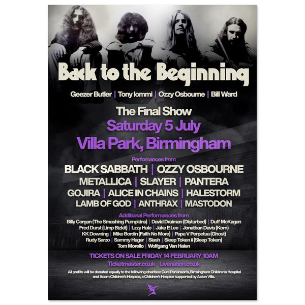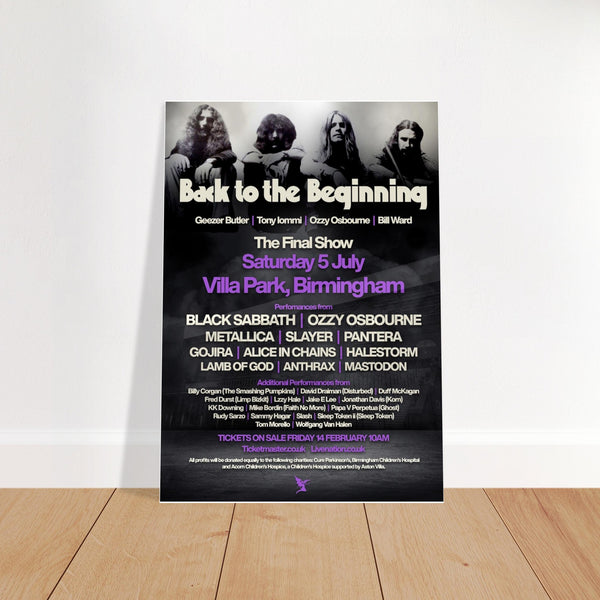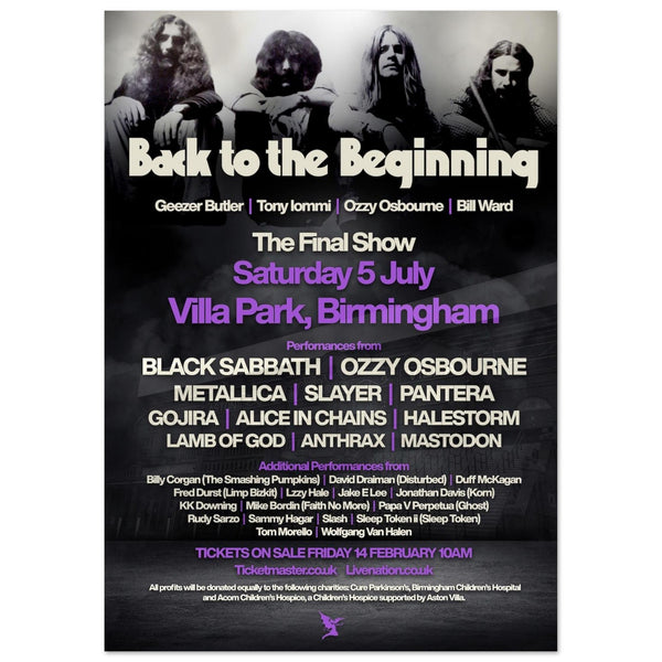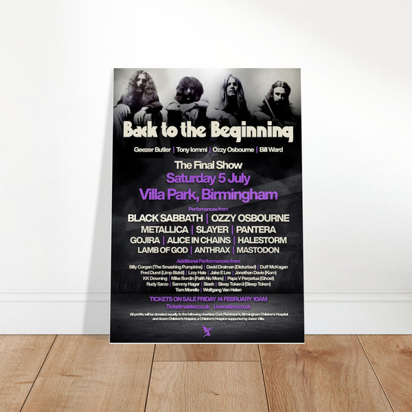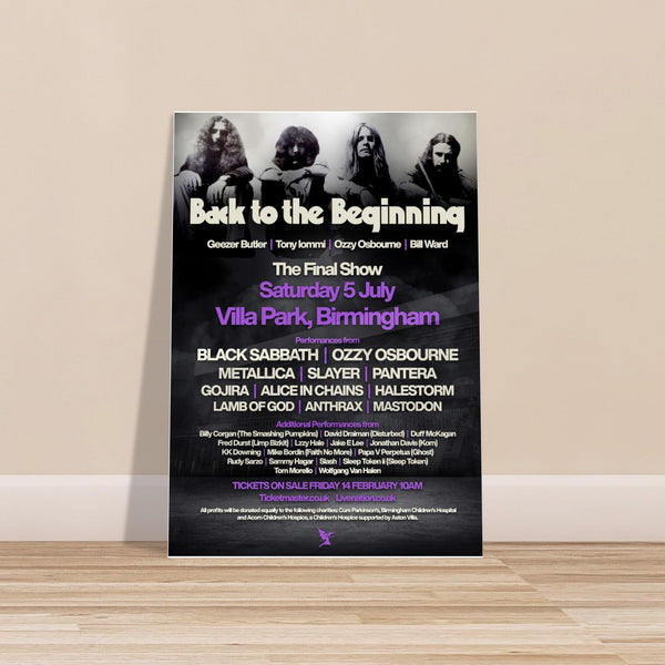 Celebrate the legendary legacy of Black Sabbath with our Back To The Beginning Tour Poster. This striking artwork not only captures the essence of their timeless music but also creates a stunning visual impact for any space.