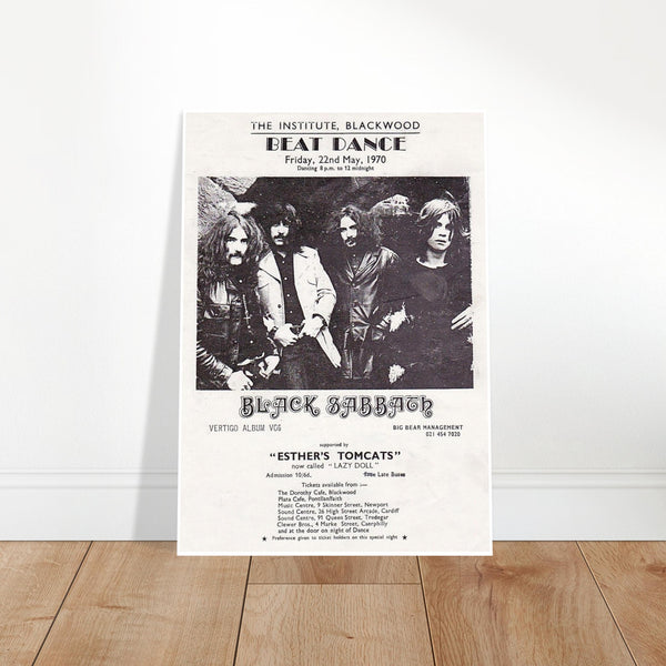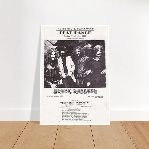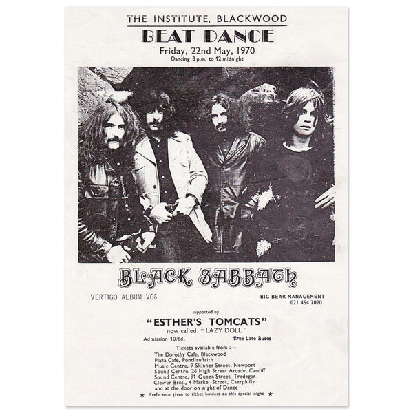 Celebrate the legendary music of Black Sabbath with our exclusive Rare Poster commemorating the historic 'Beat Dance' event held on May 22, 1970, at The Institute in Blackwood, England.