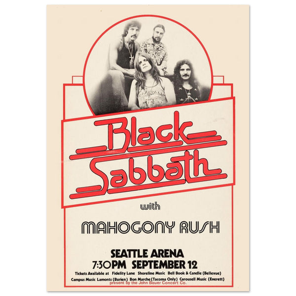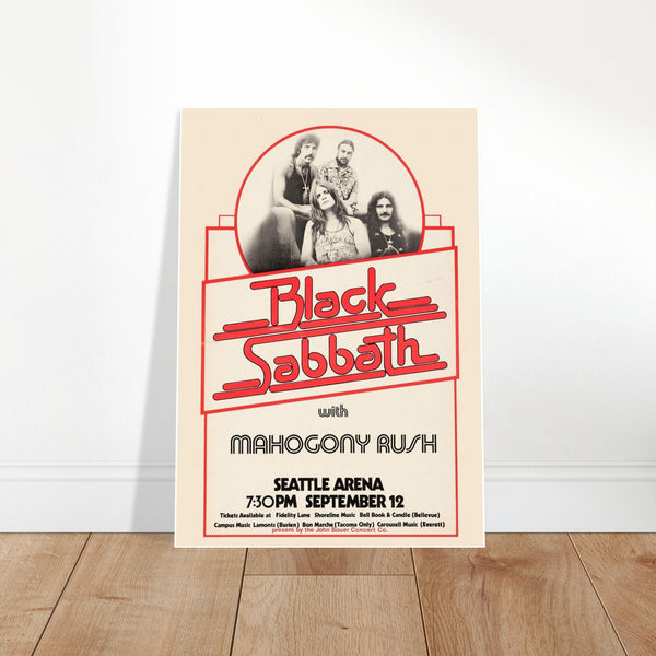 Immerse yourself in the nostalgia of rock history with our Black Sabbath Seattle Arena 1975 Tour Poster. This iconic piece not only showcases the legendary band's powerful performance but also offers a unique touch to your space.