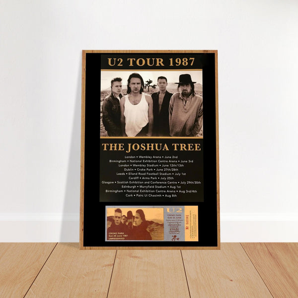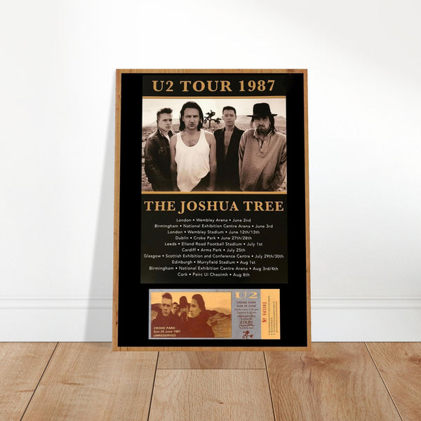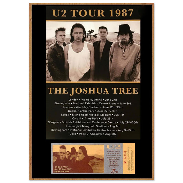 Celebrate the unforgettable energy of U2 with our Vintage Concert Poster from the iconic Joshua Tree Tour of 1987, featuring a striking concert ticket superimposed on the artwork. This poster encapsulates a pivotal moment in music history, making it a perfect addition to any collection.